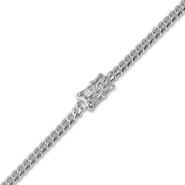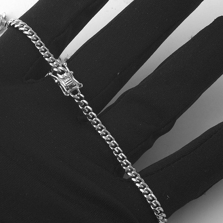 These bracelets have the true cuban link shape with beveled edges and it is finished with a triple locking box clasp with side locks. It is made out of stainless steel, which is stronger than gold and heavier than most plated jewelry. It will never fade or tarnish. You can wear it daily with no worries. It is finished by hand polishing which gives it a silky smooth feel just like white gold. These usually sell out quick. Order yours today!
