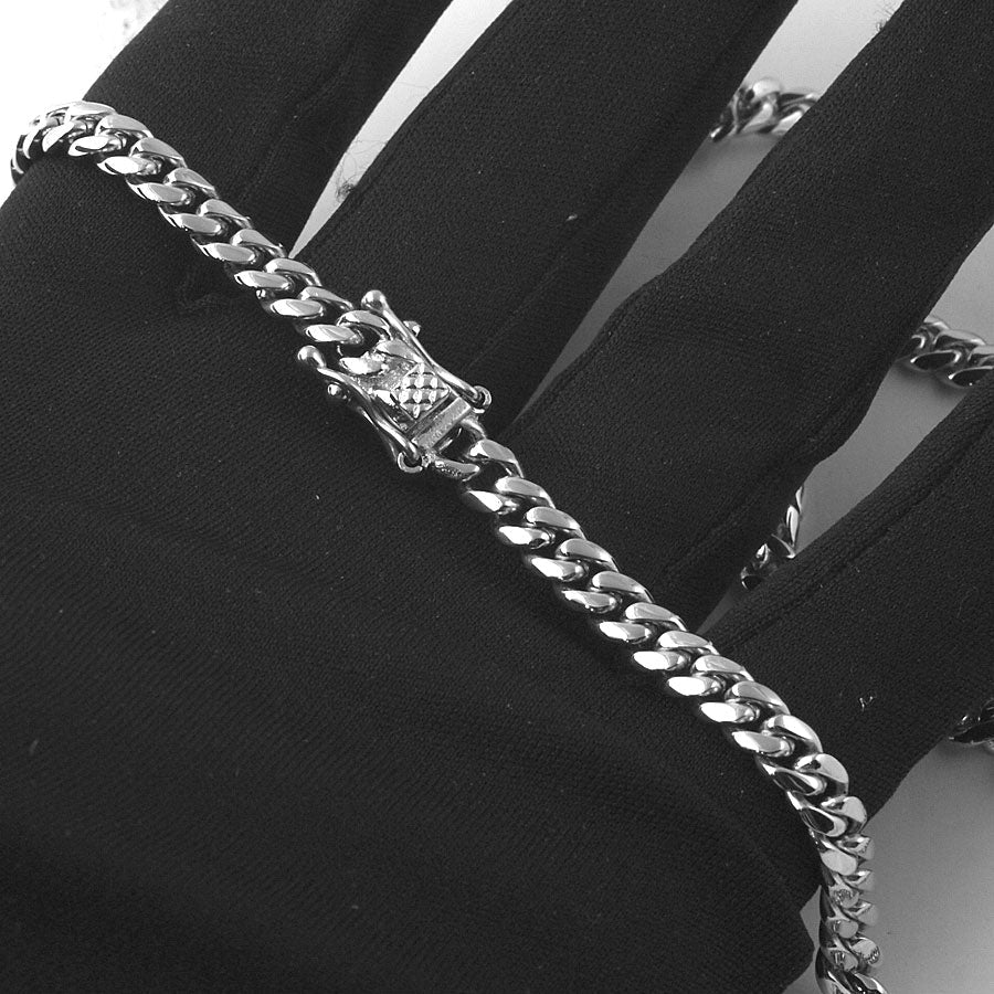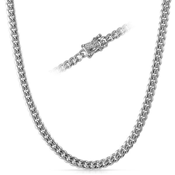 Introducing the JF premium line. This is the highest quality, most realistic Miami cuban chain available. These chain have the true cuban link shape with beveled edges and it is finished with a triple locking box clasp with side locks. This will give you the true look and feel of a white gold chain at a much lower cost.