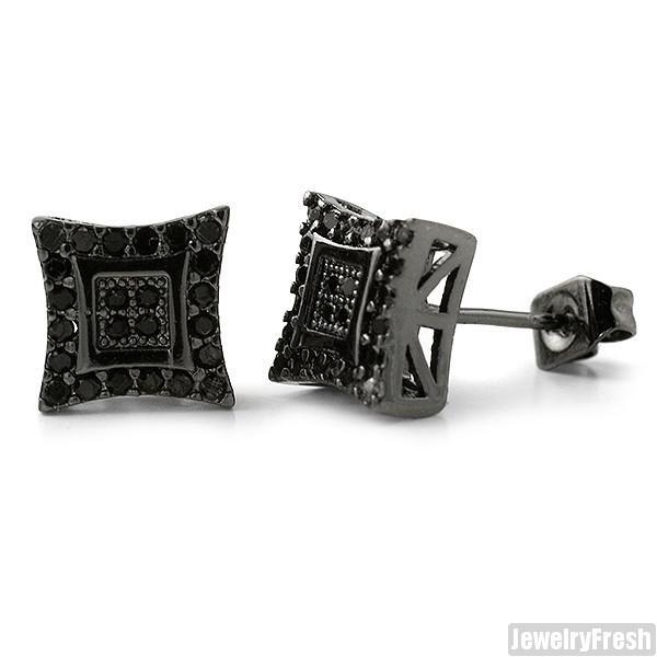 8mm Black Finish Fine Kite Stud Earrings