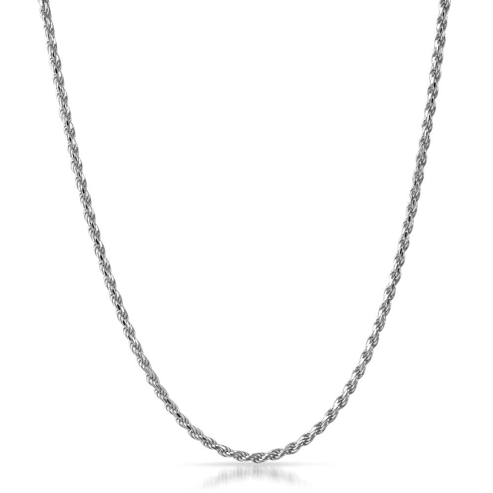 This rope chain looks good with anything and will never go out of style. Switch up your look by wearing it alone, with a pendant or layered with other chains. This is a genuine Italian made sterling silver chain. These are the highest quality and look just like white gold. Order yours today and enjoy it forever with no worries about color changing.