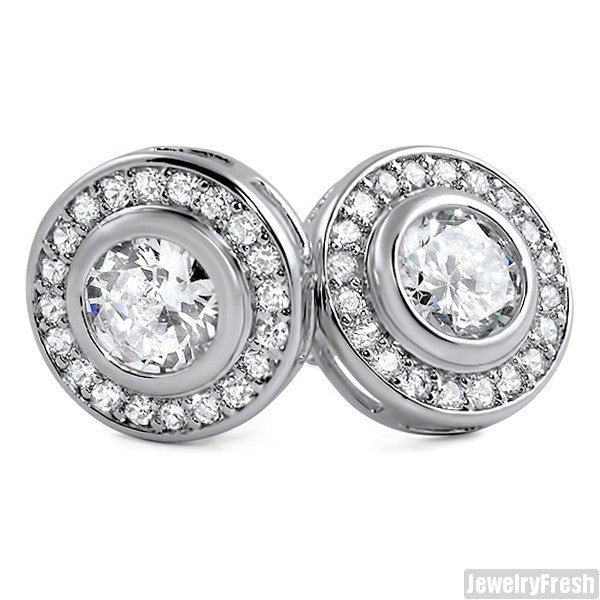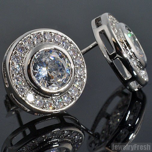 White Gold Finish Bezel Set Big Stone CZ Earrings