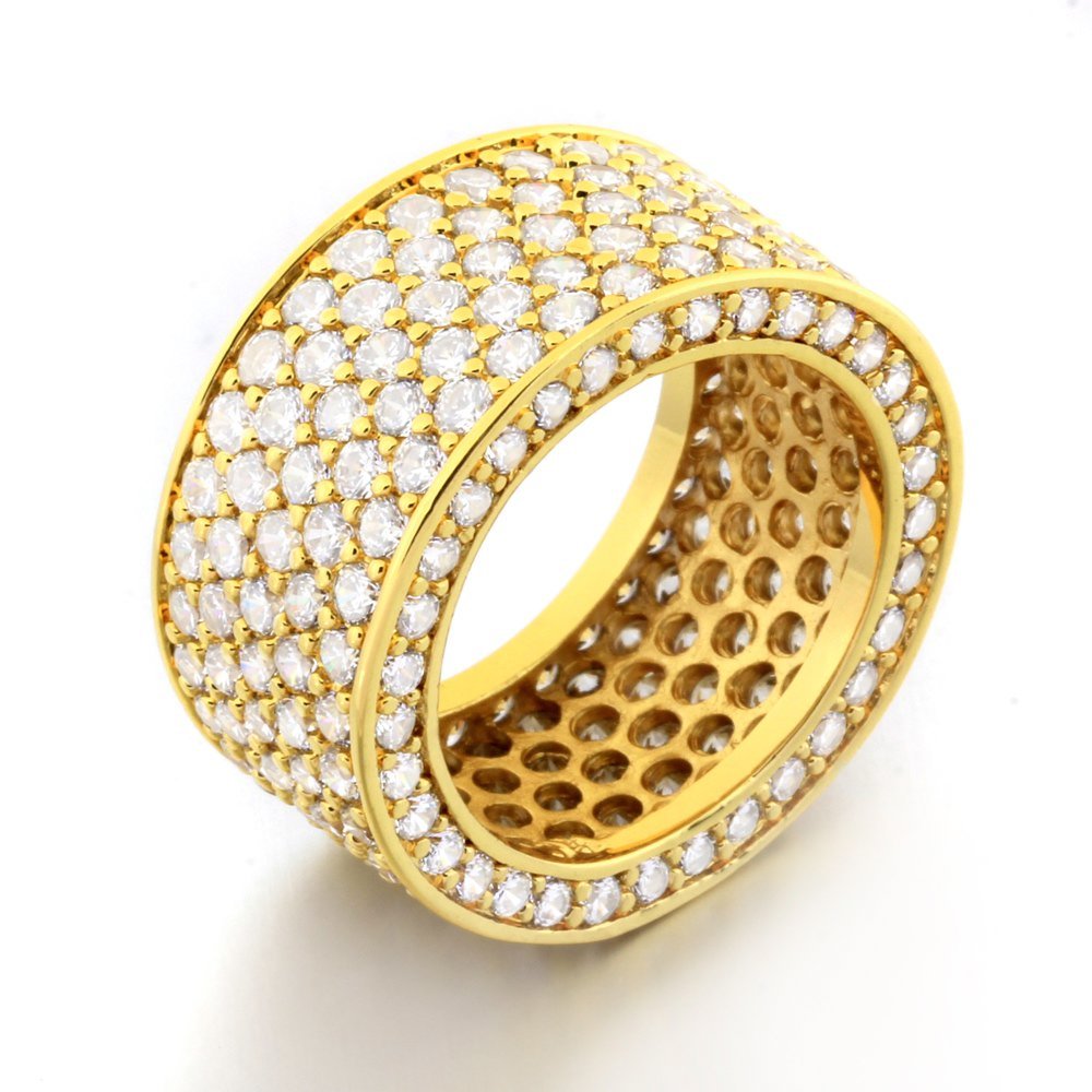 These rings are very high quality. Choose from affordable brass option or genuine sterling silver as the base metal with thick gold plating. The stones are lab made simulated diamonds. The micropave hand setting gives it that insane shine. This ring looks and feels genuine in every way.