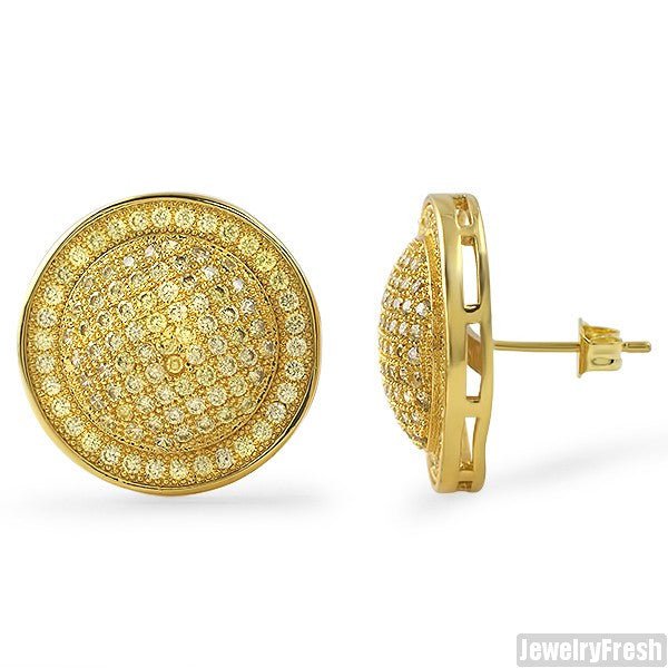Gold Canary Jumbo CZ Domed Mens Earrings