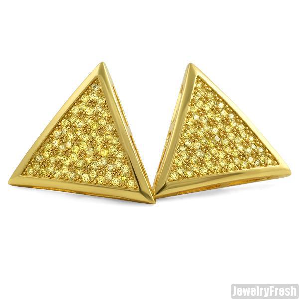 Gold Canary Jumbo Triangle CZ Iced Out Hip Hop Earrings