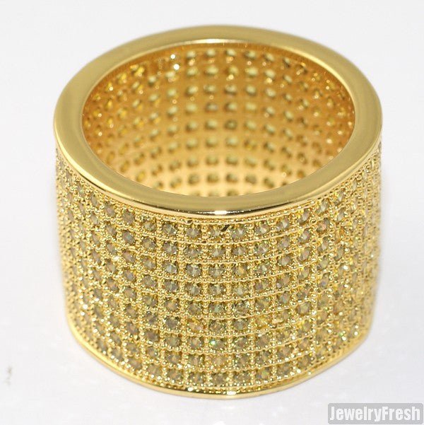 Gold Canary Yellow 9 Row Micropave Iced Out Wide Ring