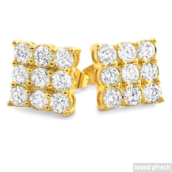 Gold Finish 9 Stone Prong Set CZ Stud Earrings 2 Carat