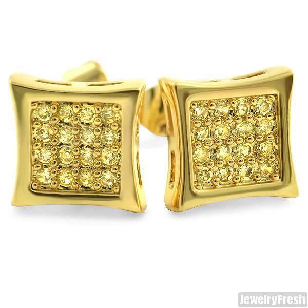 Gold Finish Canary 32 Stone CZ Prong Set Kite Earrings