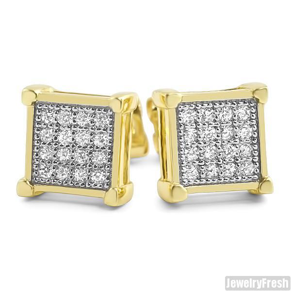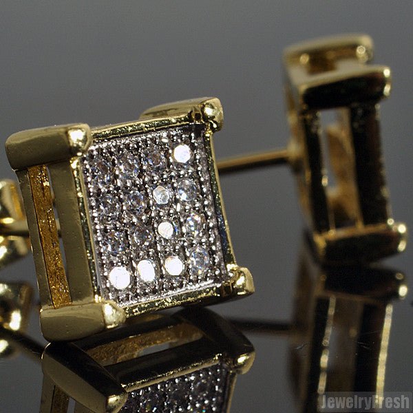 Gold Finish Micro Pave CZ Square Earrings