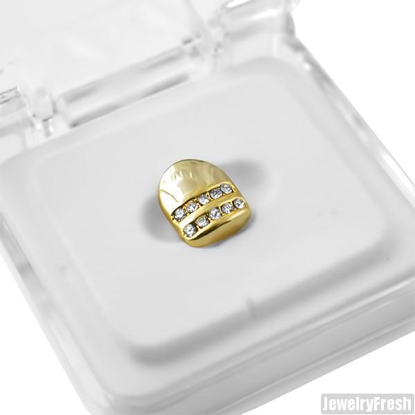 Gold Tone 2 Row Iced Single Tooth Cap Grill