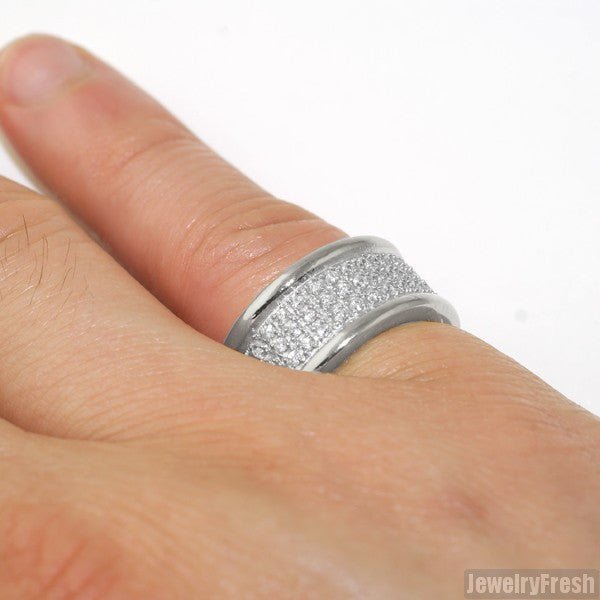 This top of the line ring is constructed out of solid stainless steel for a solid, heavy feel that will never tarnish or change color. Its stronger than real gold or platinum. The stones are AAA quality lab made simulated diamonds. They have the sparkle and fire of real VVS diamonds without the high cost. All are prong set by JF master jewelers. Order yours today!