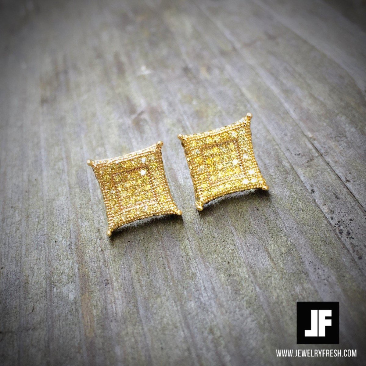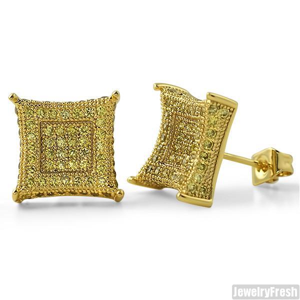 Jumbo 12mm CZ Mens Royalty Earrings Canary