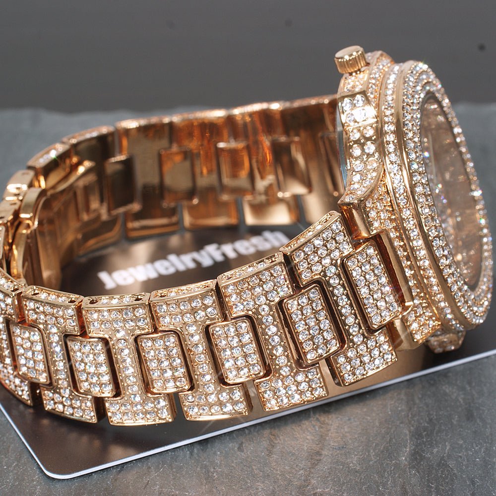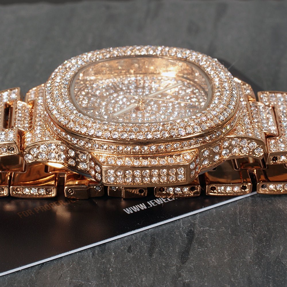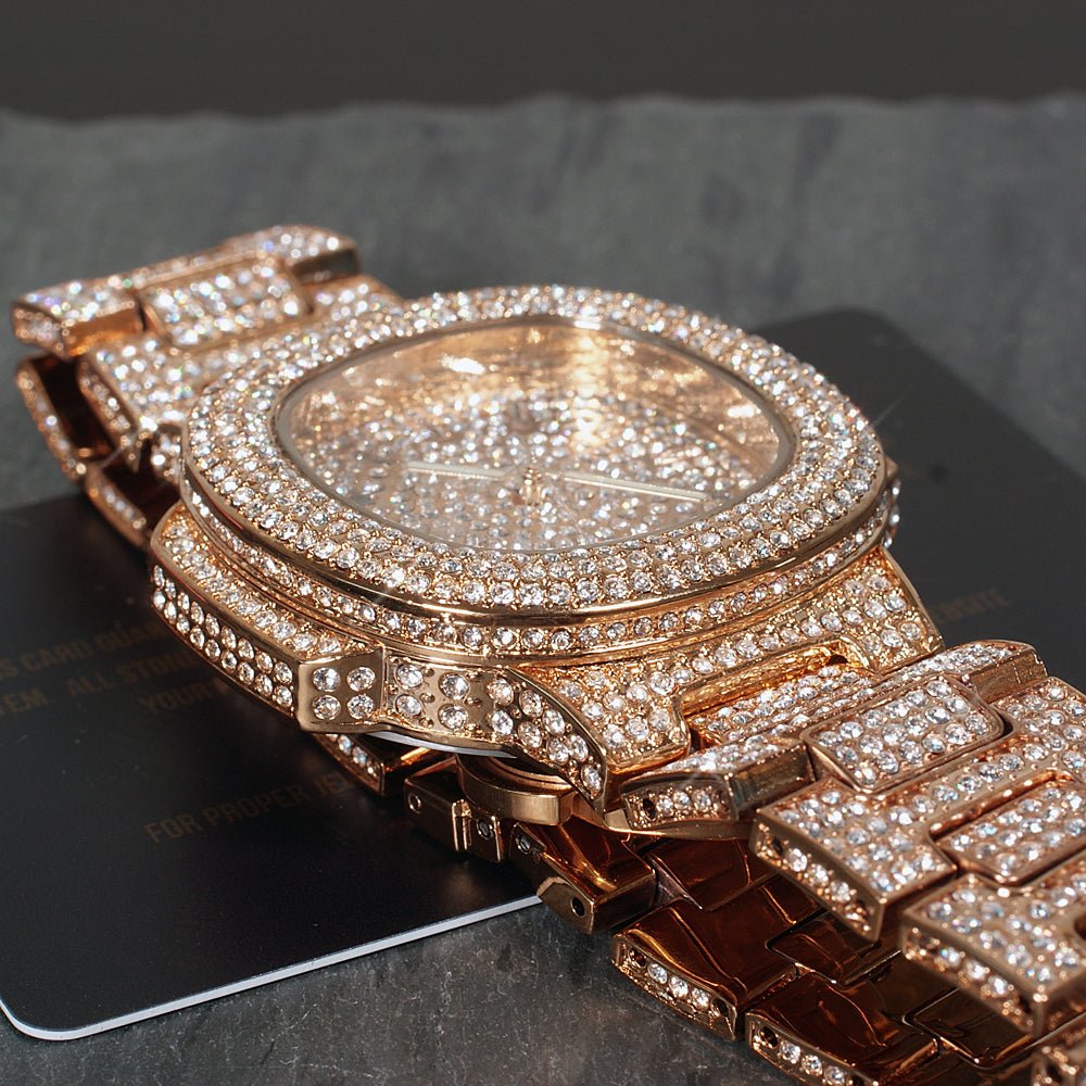 The nicest watch we have ever made just dropped! Turn heads everywhere with this on your wrist. This is the jumbo version of our top selling nautical watch. This luxurious time piece is fully iced out including the dial, bezel, lugs, case, and all around the entire band. The stones are genuine Czech made crystals that shine with flawless clarity. Available in 3 colors. Order yours now and rock this is just a few days!