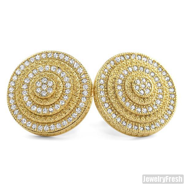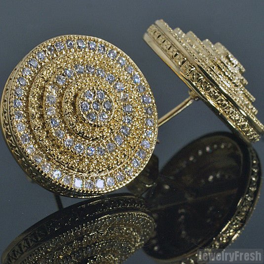 Jumbo 18k Gold Finish Bullseye Round CZ Earrings