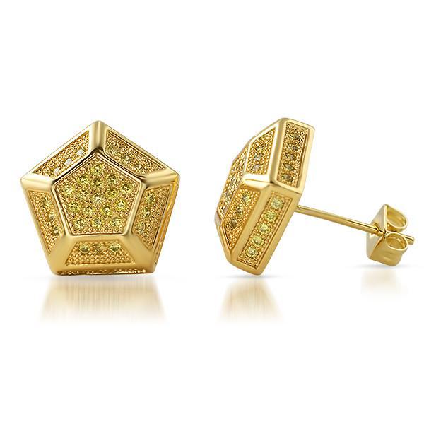Large 13mm Custom Hexagon Gold Canary Earrings
