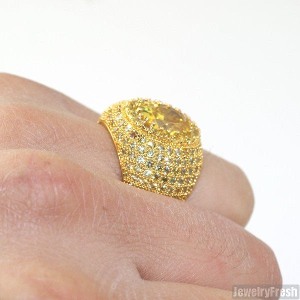 Large Oval Stone Gold Canary Lab Made Ring