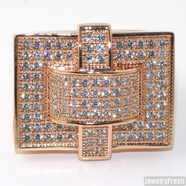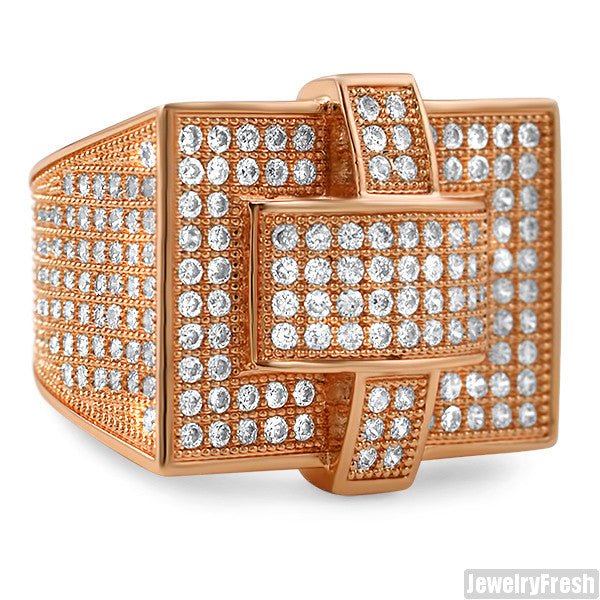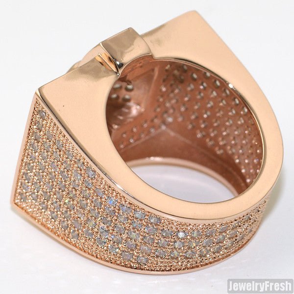 Large Rose Gold Cross Style 360 CZ Micropave Mens Ring