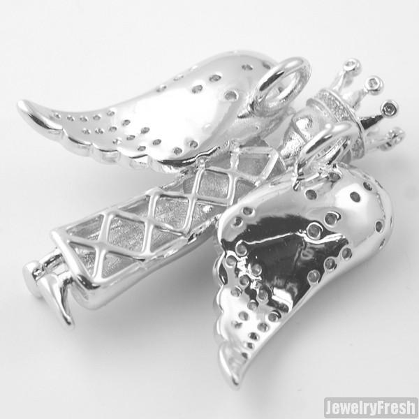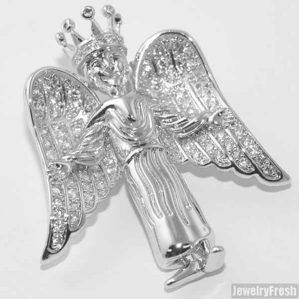Silver 3D Iced Angel Pendant Set