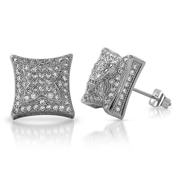 Silver Tone 11mm Puffed Kite Micropave CZ Earrings