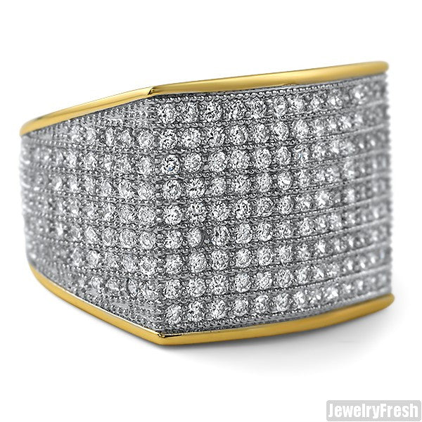 Simple Large Micropave 360 Iced Out Ring Gold Finish