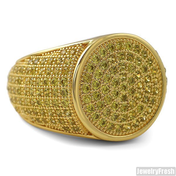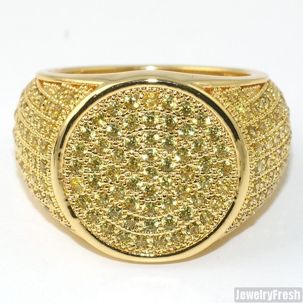 Simple Round Micropave 360 Iced Out Canary Gold Ring