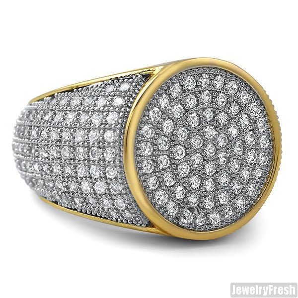 Simple Round Micropave 360 Iced Out Mens Gold Ring