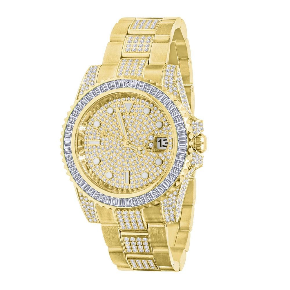 Simulated Diamond Baguette Bezel Iced Sport Watch