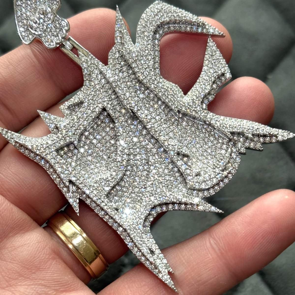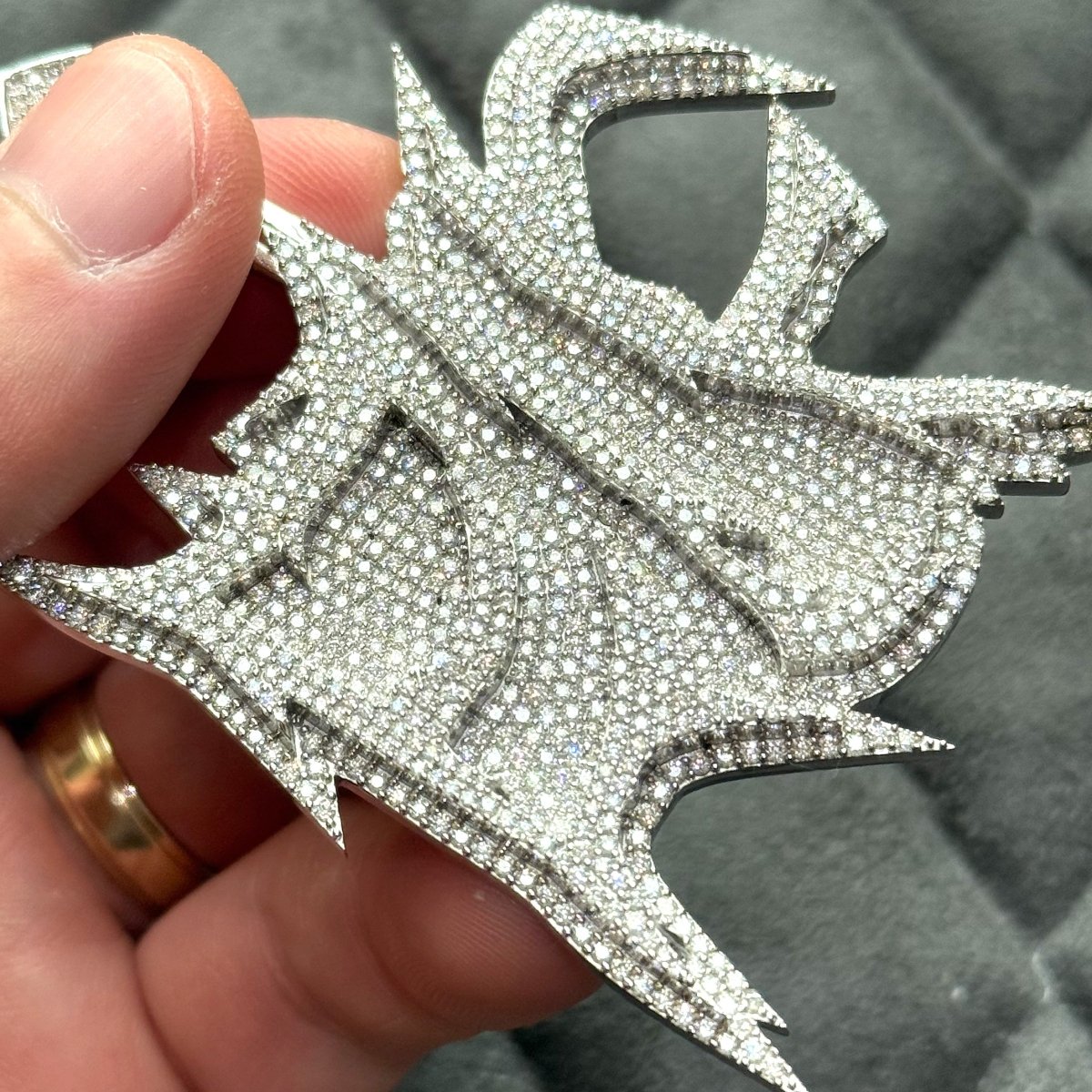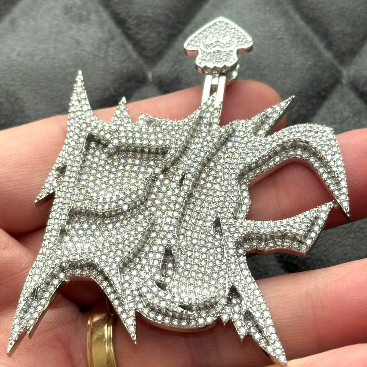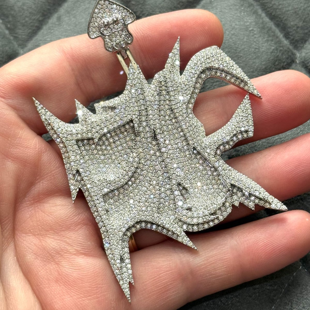 $1200 custom moissanite pendant. Original customer never paid the balance. This is your chance to grab it at a steal. This price is below the cost of materials and labor that went into it. Would cost well over $300 to make this today with any jeweler. Only 1 available. First come first serve.