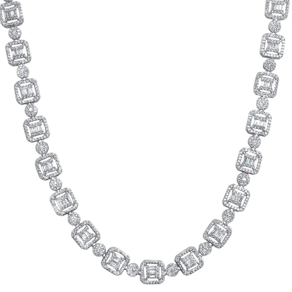 Sterling Silver Iced Out Baguette Cluster Chain