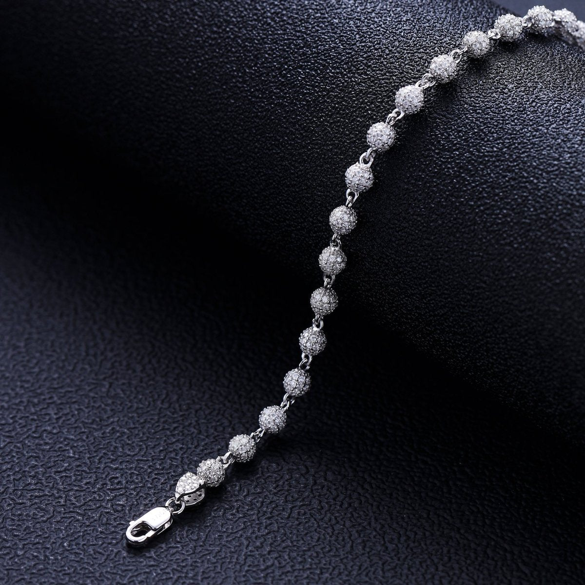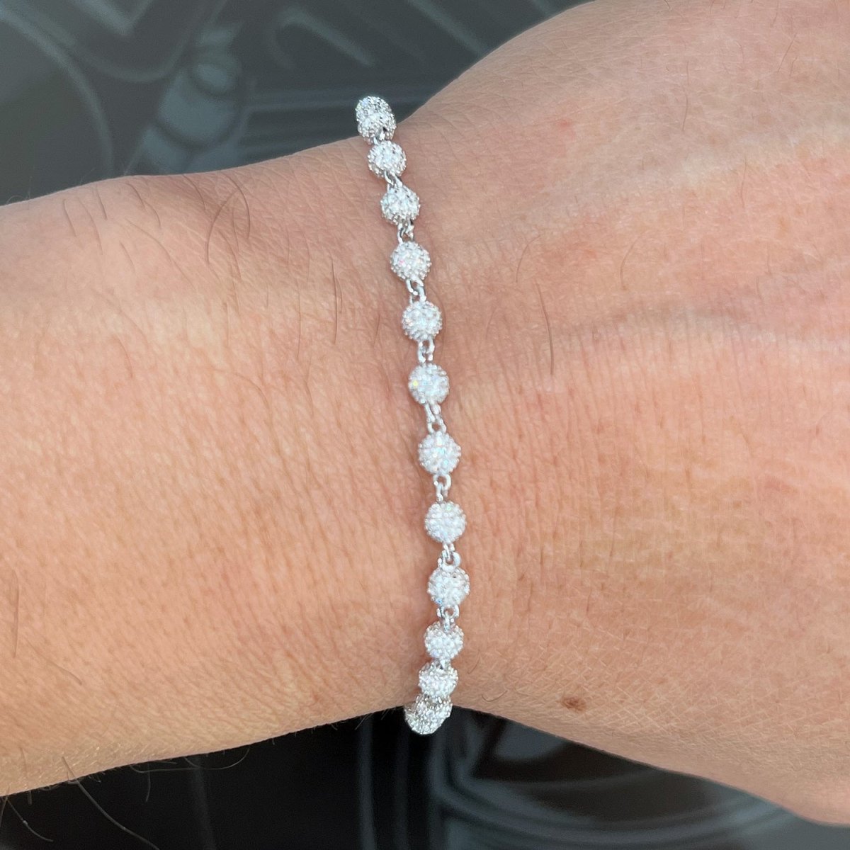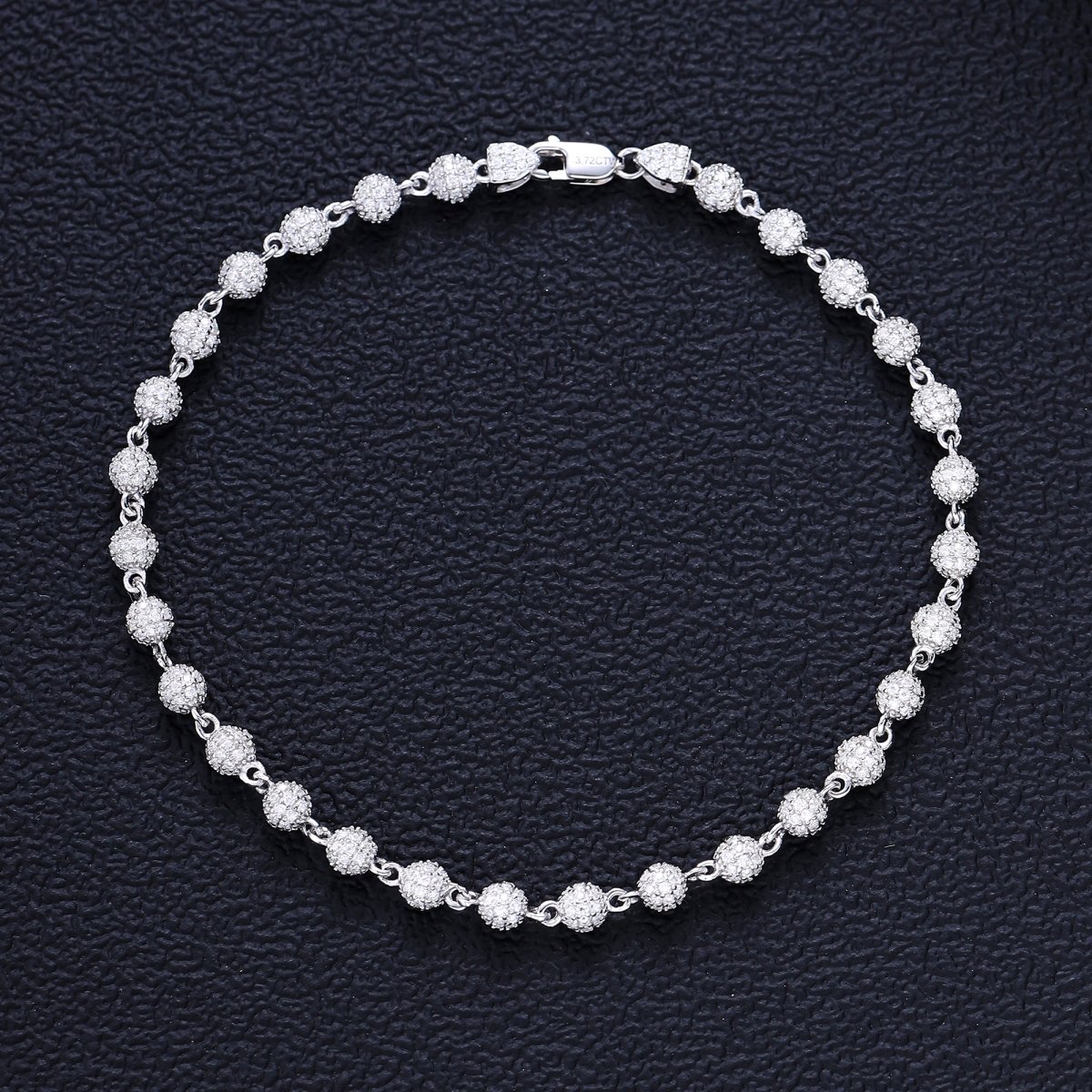 Sterling Silver Moissanite Iced Out Bead Bracelet 4MM