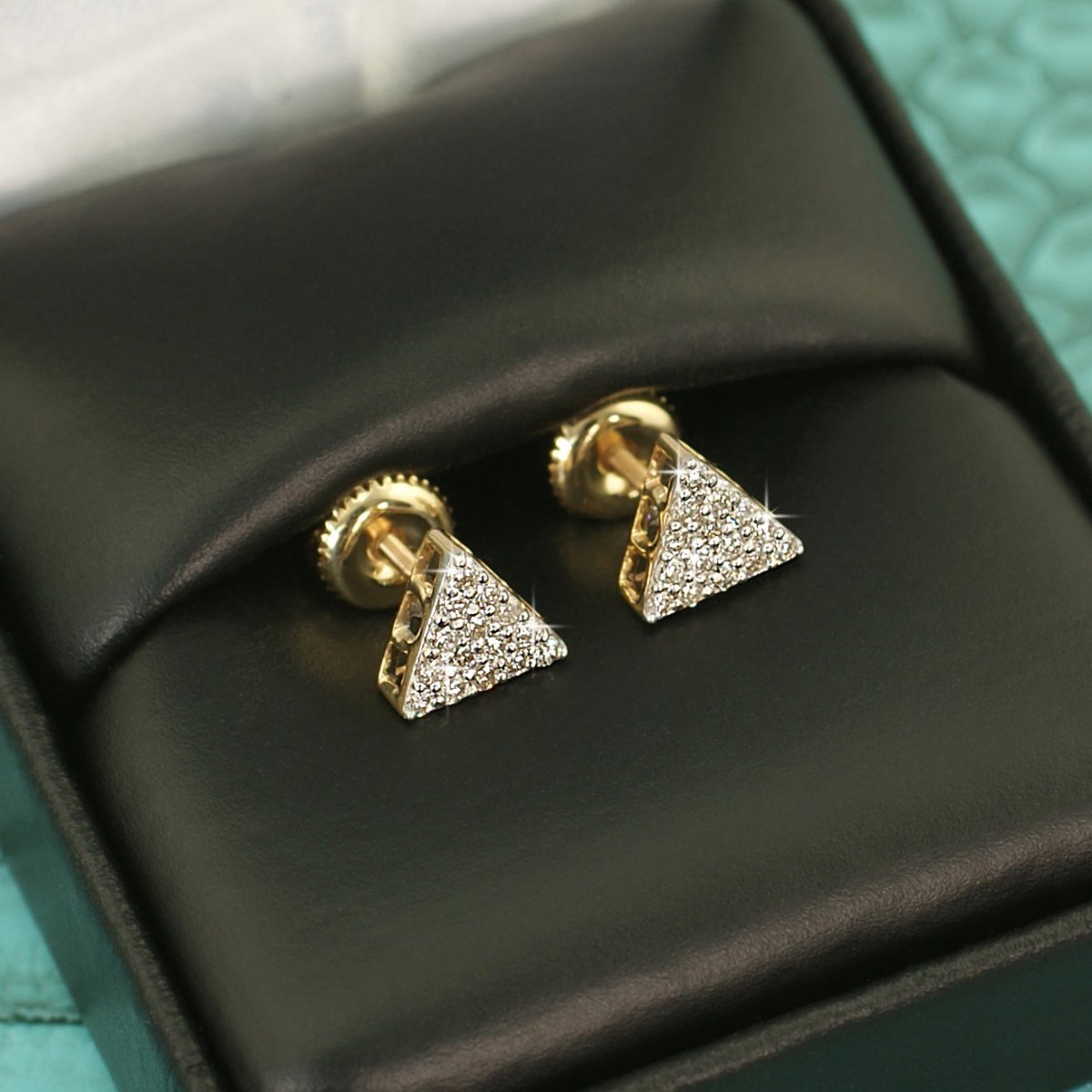 Triangle Pave 0.29 Carat Genuine Diamond Gold Earrings