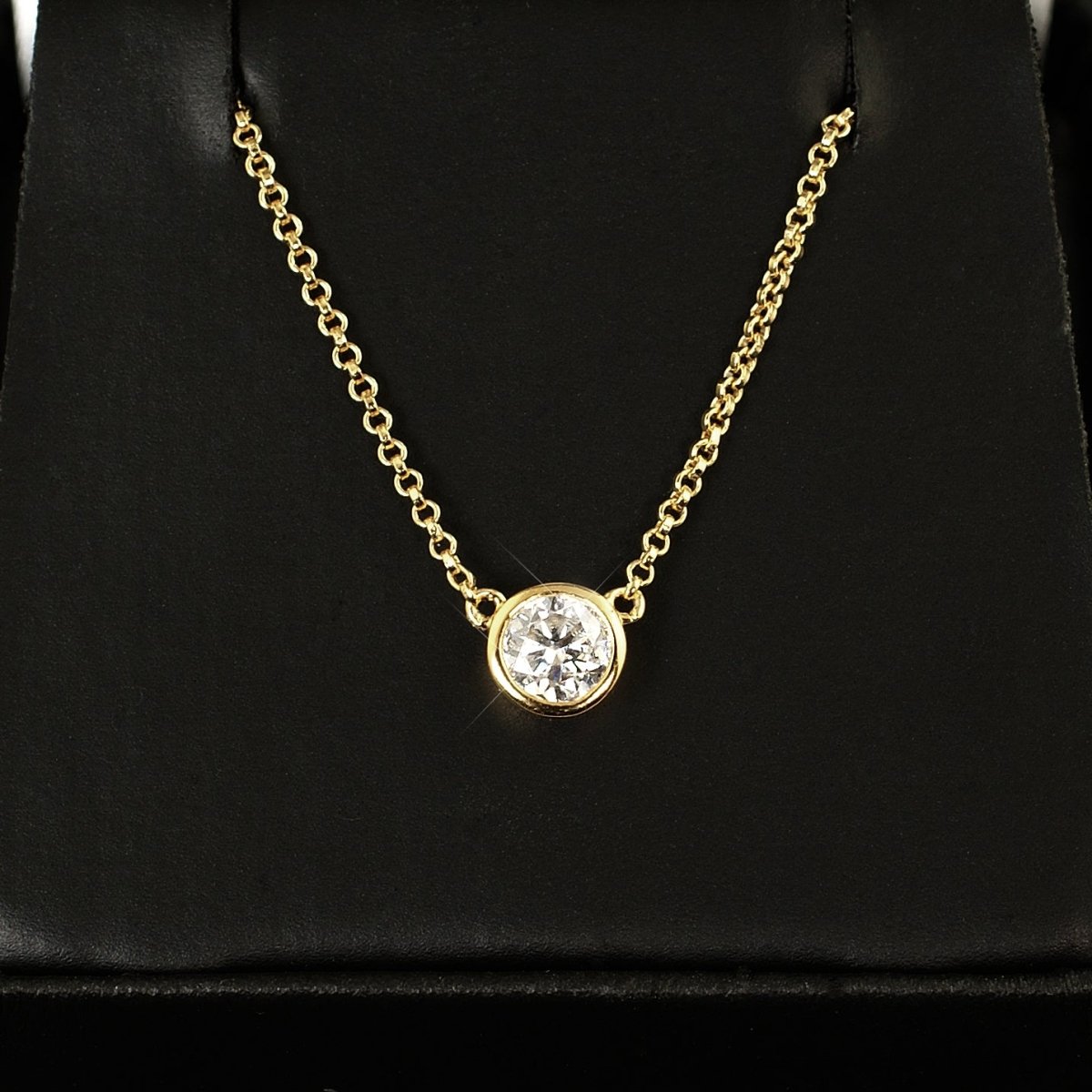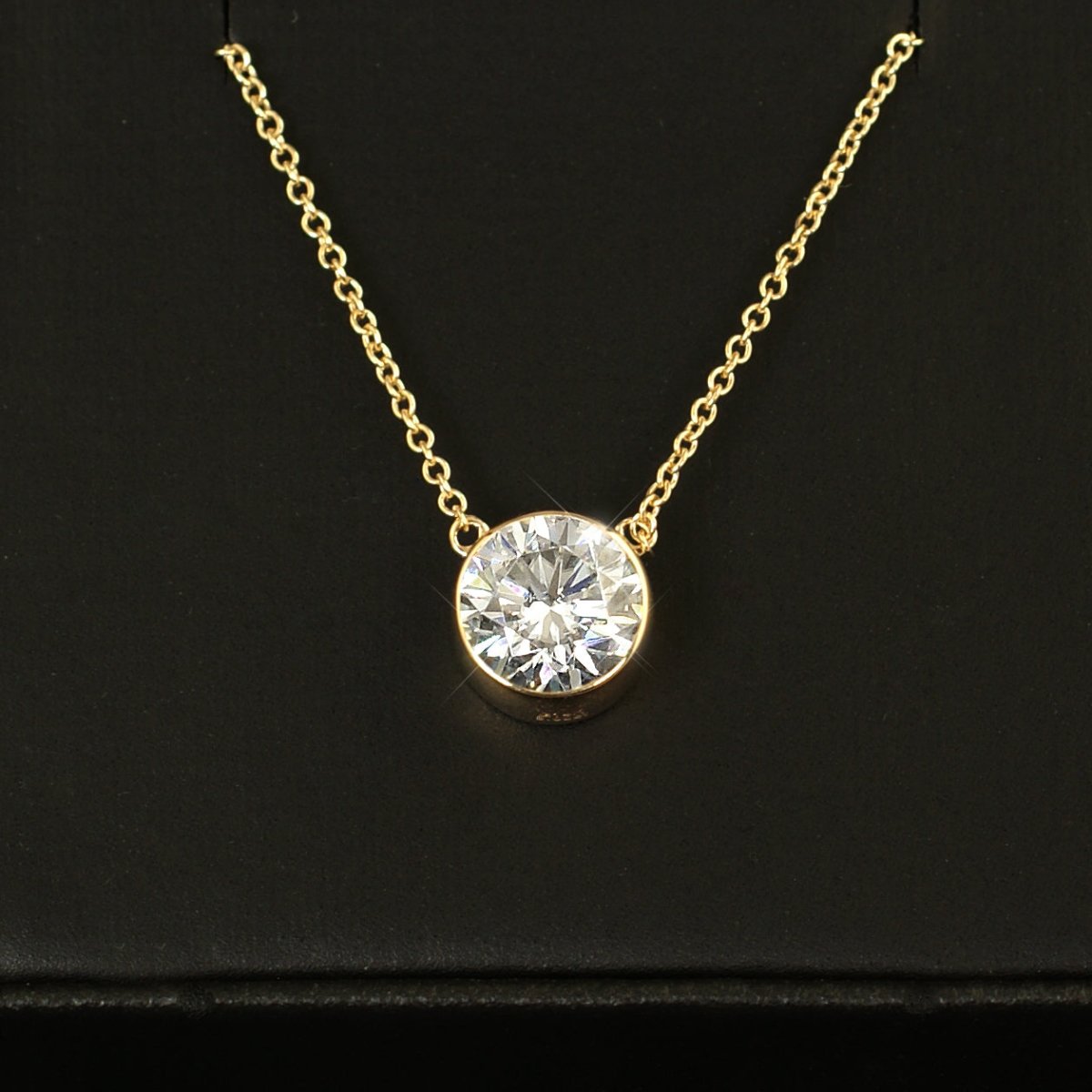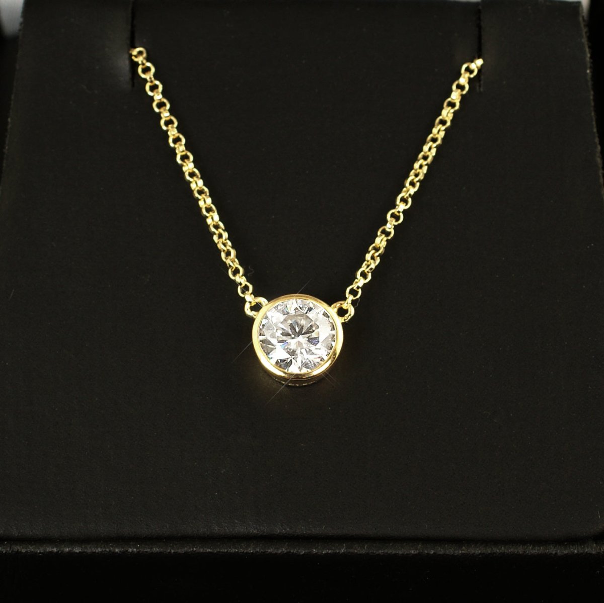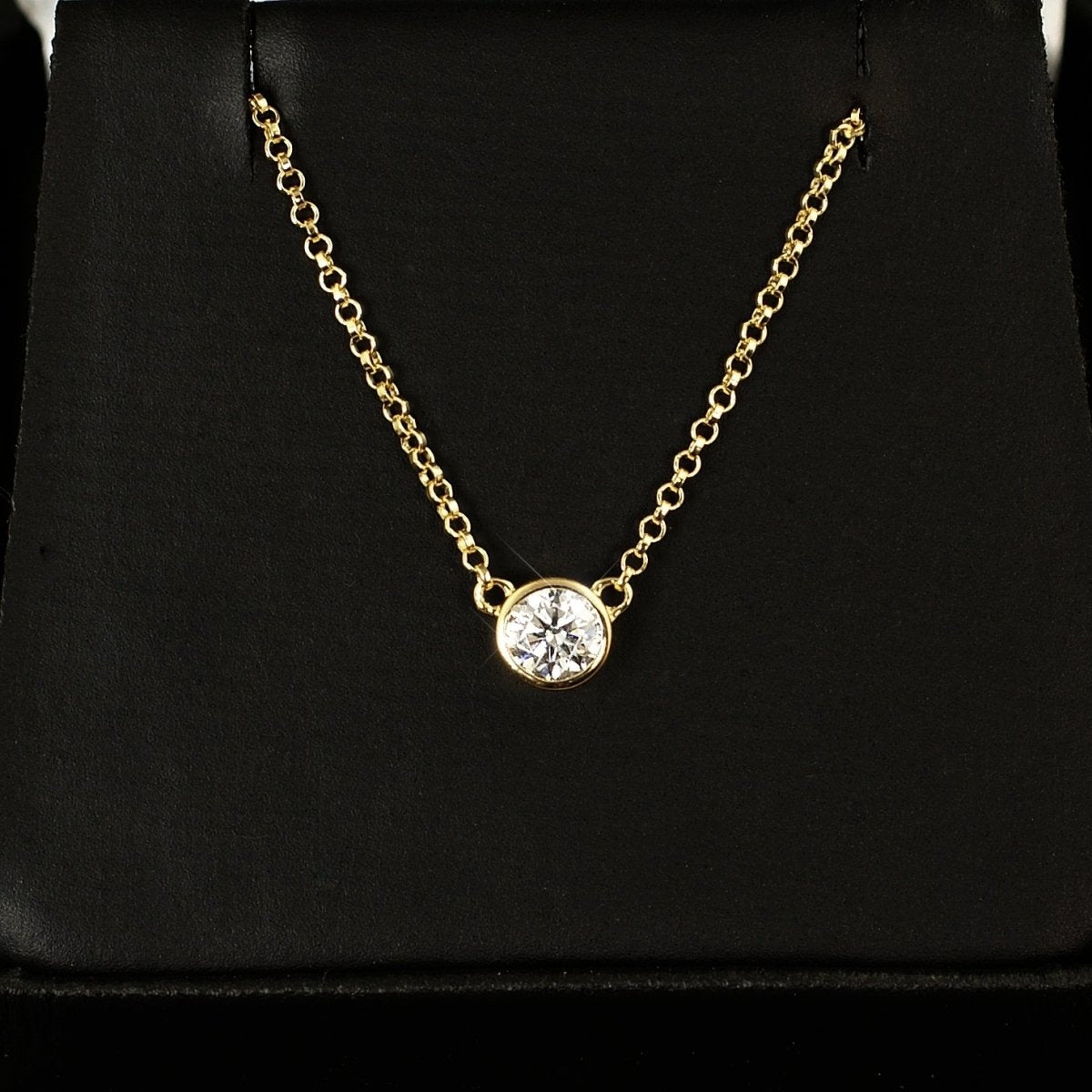 This is the classic Tiffany style necklace that every girl loves. This simple design gives all the focus to the VVS1 glistening moissanite stone at the center. Order yours today!