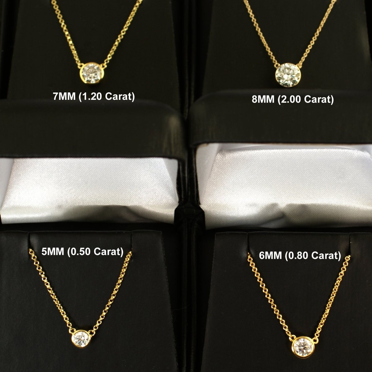 Our Top level VVS1 Moissanite stones have impressive fire and brilliance and hits harder than CZ or any other type of fake diamond. They test positive as real diamonds on most handheld diamond testers. It'll look and shine just like an expensive diamond necklace that cost thousands of dollars. Each stone is carefully hand set to a bezel set mounting. The chain can be worn from 16 - 18 inches. Makes the perfect gift as well!