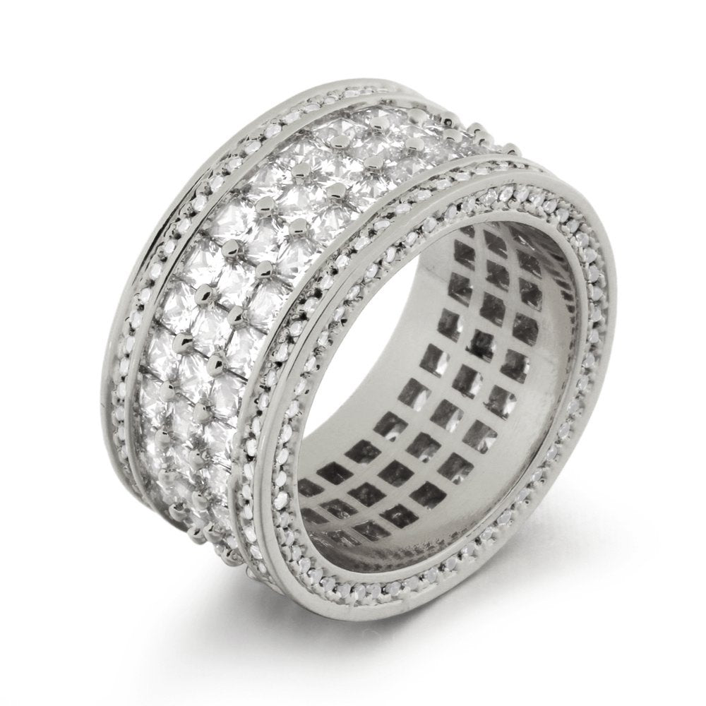 White Gold 3 Row Princess Cut CZ Eternity Ring