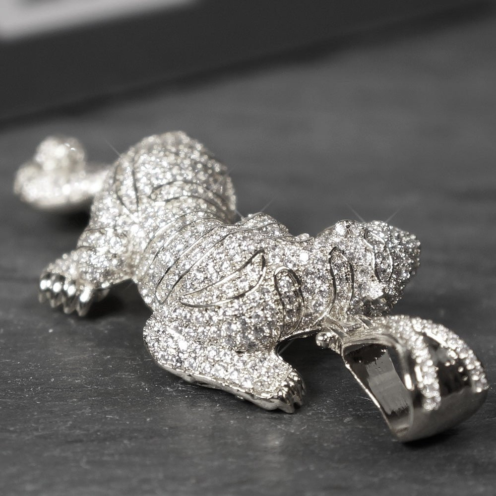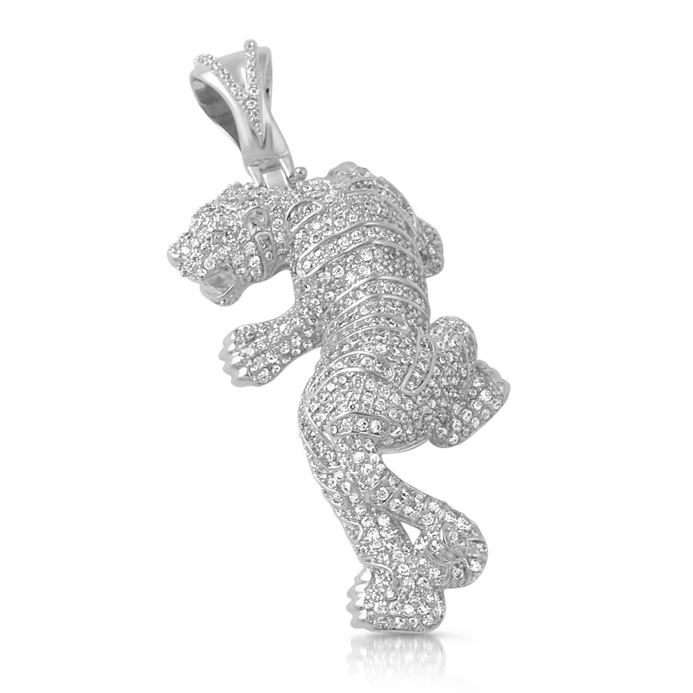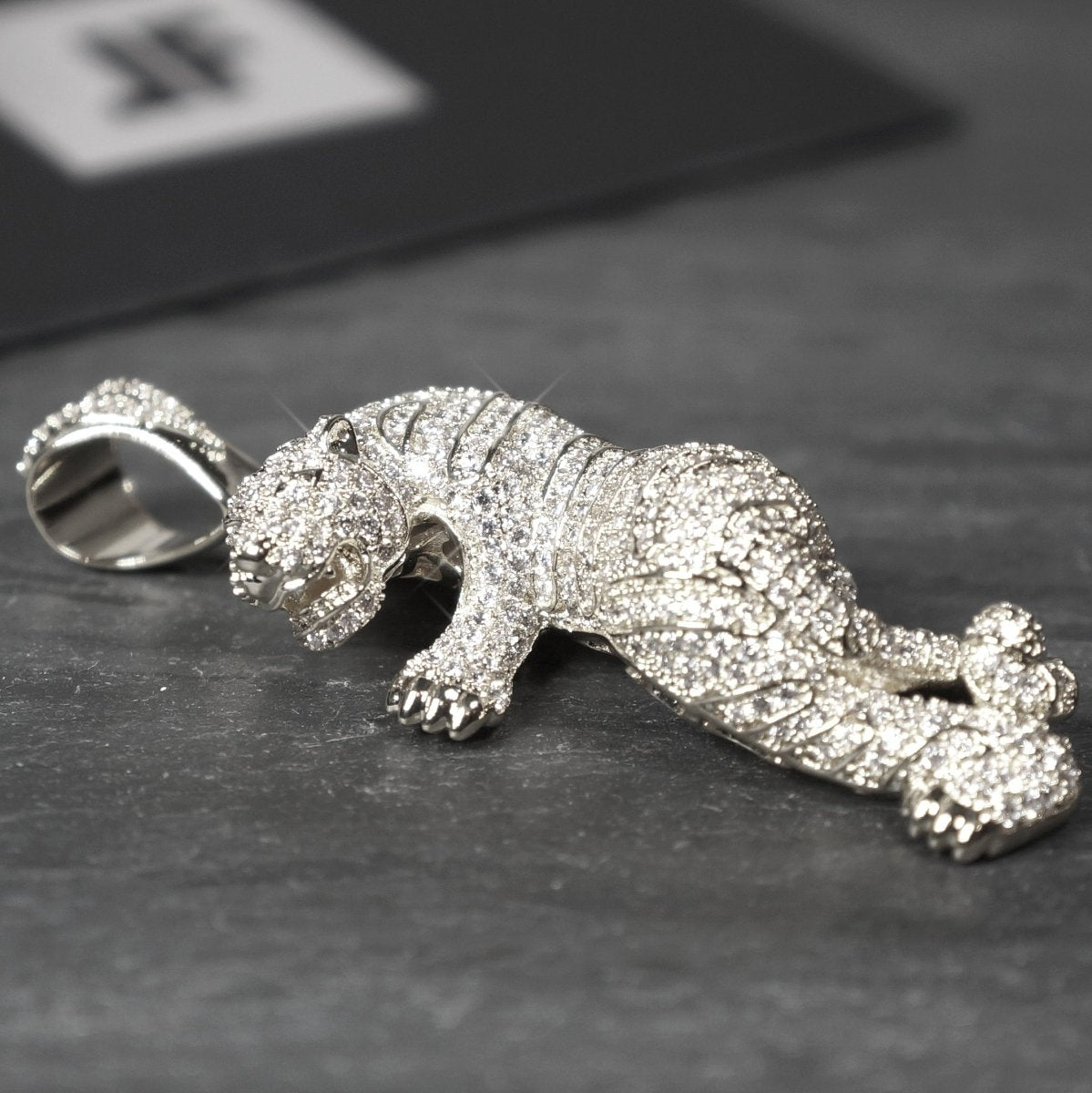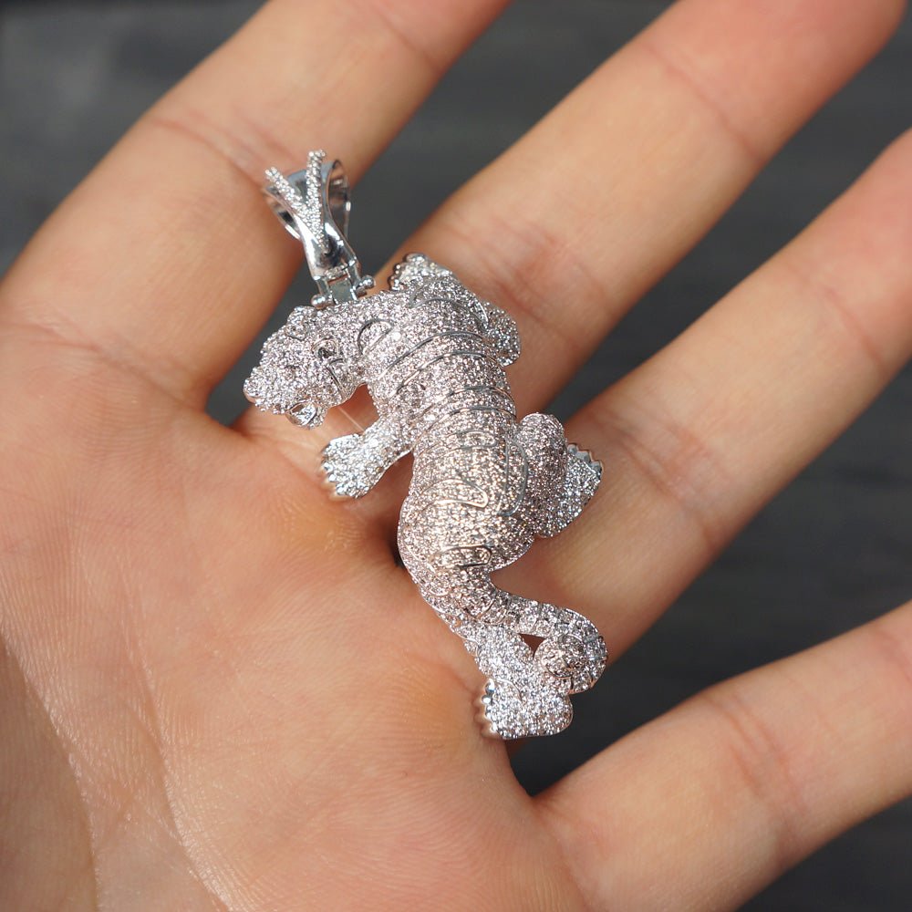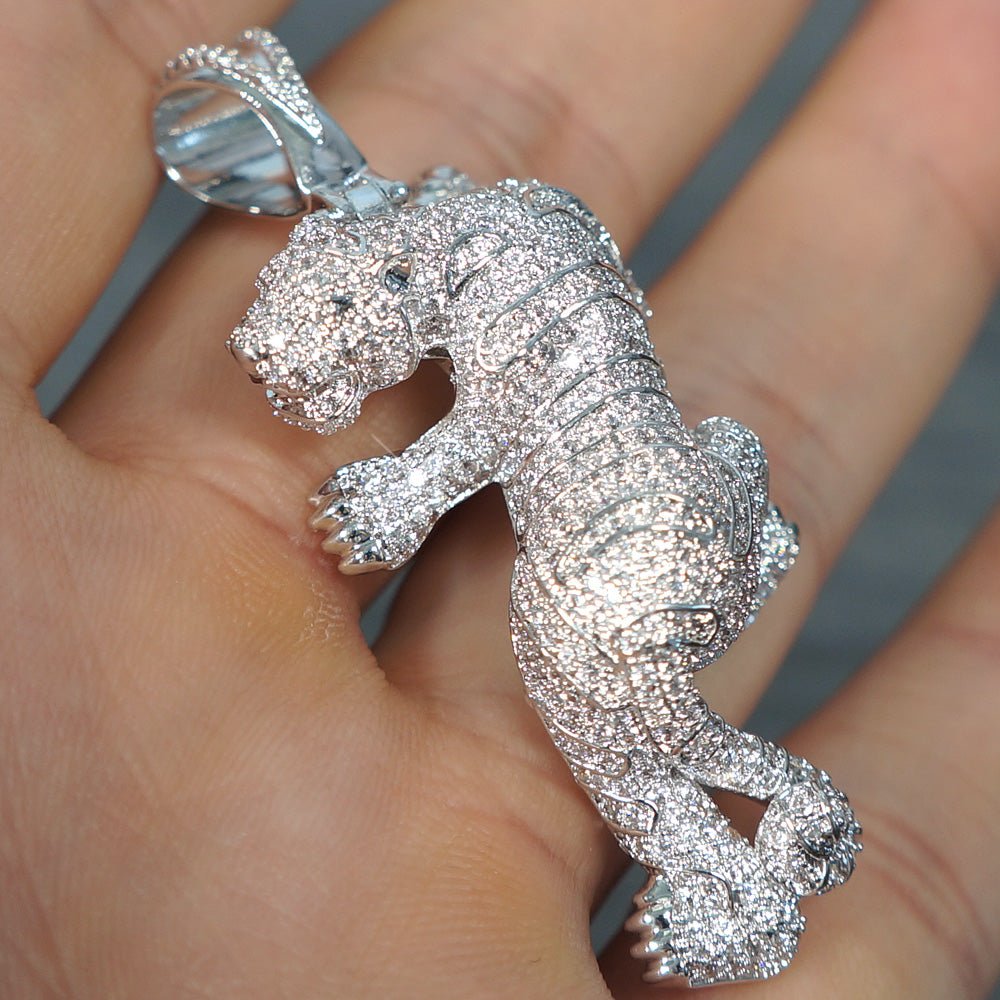 When the tiger is hungry, he will stop at nothing to get fed. Walk with the spirit of the beast in your daily grind. This epic piece is fully 3-D with incredible details. This is a work of art, all made by hand with the finest simulated diamonds. Pair this with a plain chain up to 4mm or a tennis chain 3mm and below for a fully bust down look. Order today and get this in just a few days!