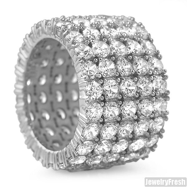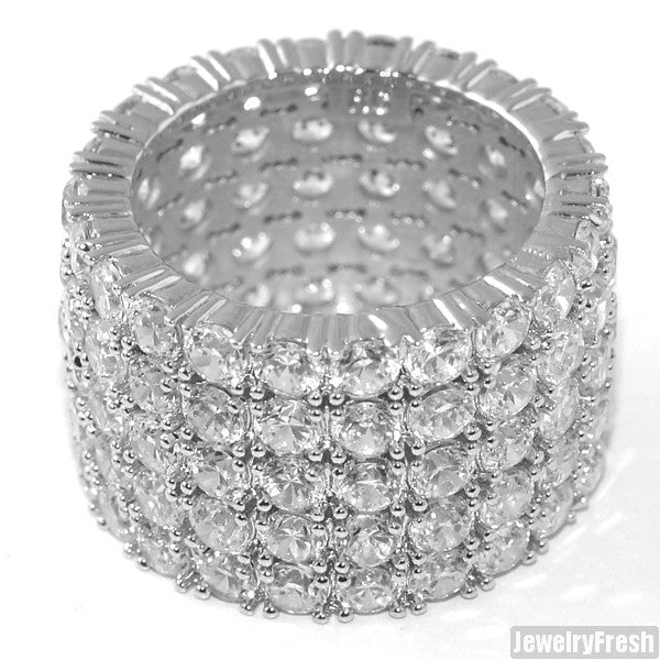 White Gold 5 Row CZ Iced Out Eternity Ring
