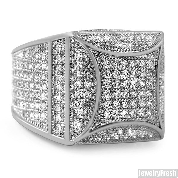 White Gold Finish Fancy Square 360 CZ Micropave Ring