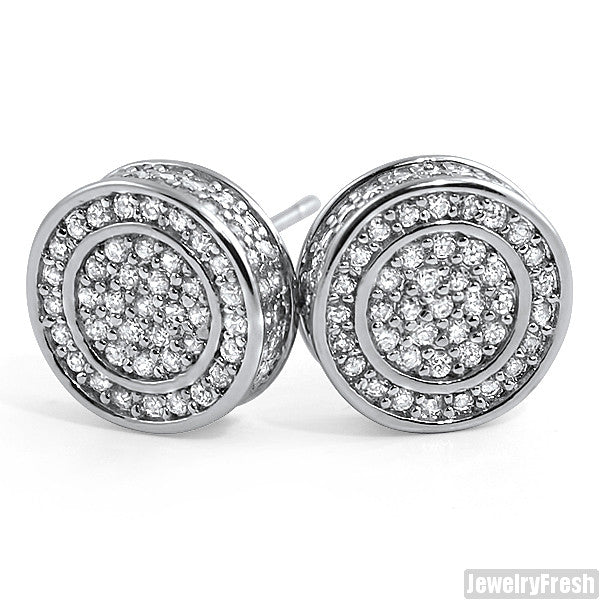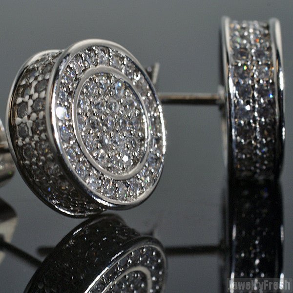 White Gold Finish Iced Out 360 Round CZ Earrings
