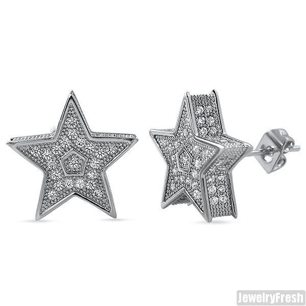 White Gold Finish Jumbo 3D Star Micropave CZ Earrings