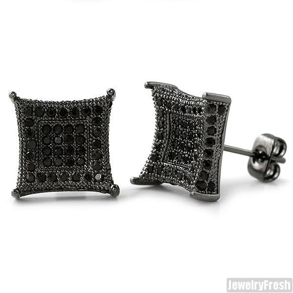 Jumbo 12mm CZ Mens Royalty Earrings Black
