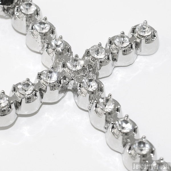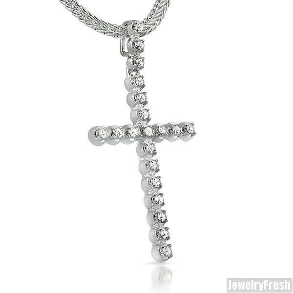 White Gold Finish Skinny Cross With Czech Crystals