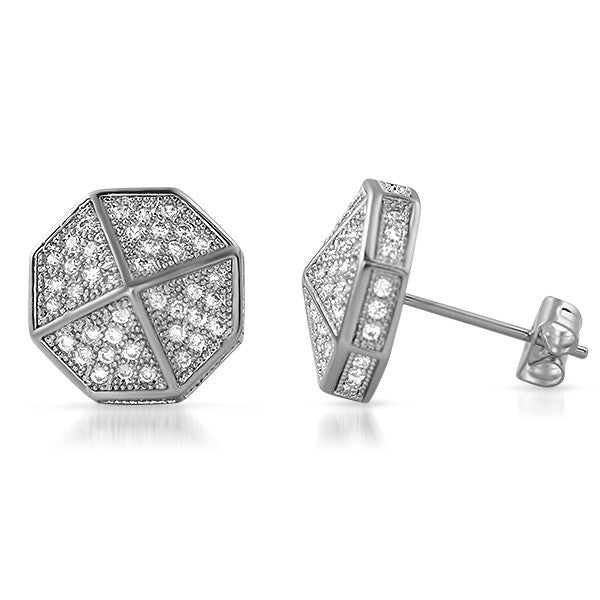 These earrings are made out of solid brass with a thick coat of black, white or yellow gold. There are breathing holes for every stone just like on high end diamond jewelry. These earrings are unisex and sold by the pair (2pcs).