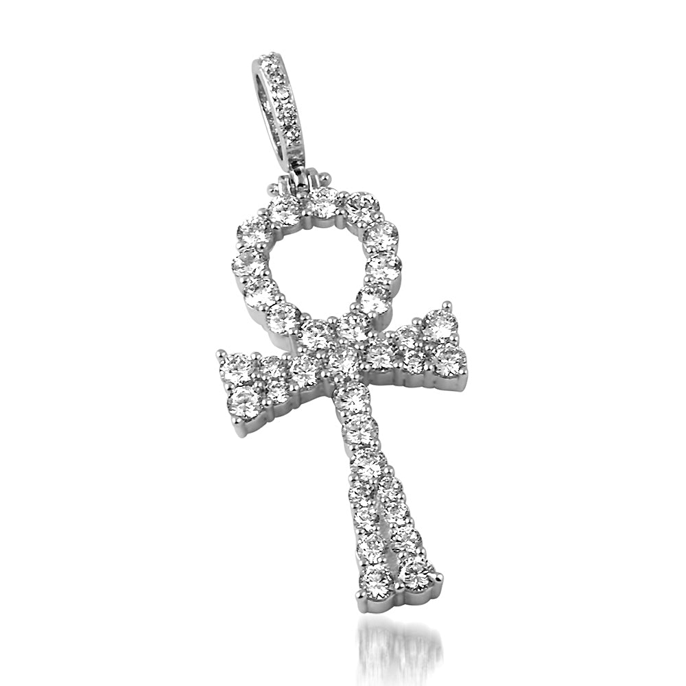 White Gold Prong Set CZ Ankh Pendant