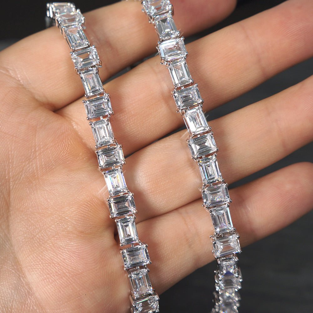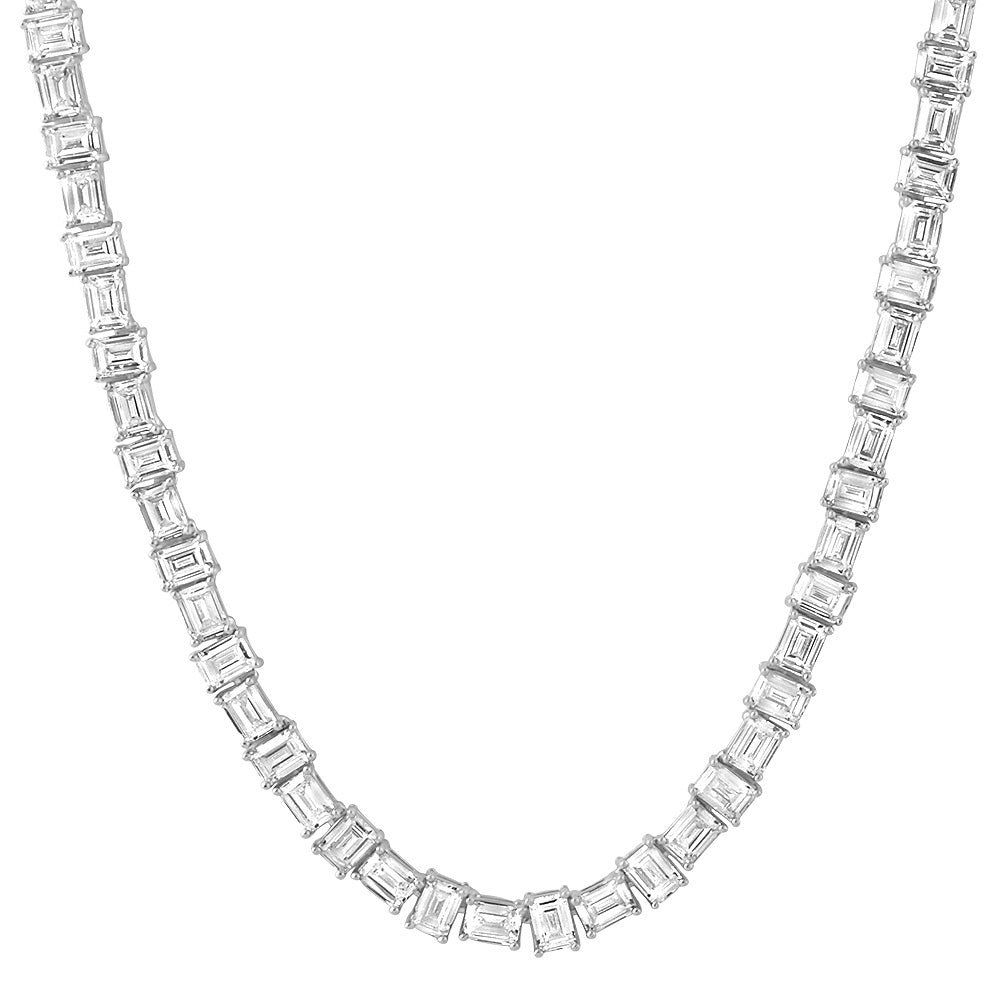 White Gold Pure Water Emerald Cut Tennis Chain